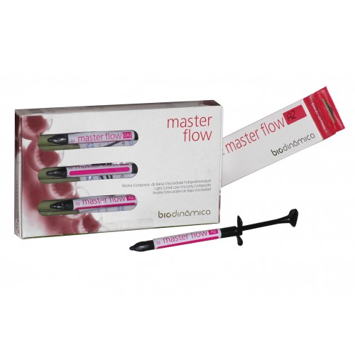 MASTER FLOW - світлотверднучий рідкотекучий композит, до складу якого входять органічно модифіковані микро частинки, що забезпечують високу міцність, більш виражену насиченість кольору і мінімальну усадку полімеризації. З матеріалом MASTER FLOW дуже легко працювати: він володіє & laquo; контрольованої плинністю.