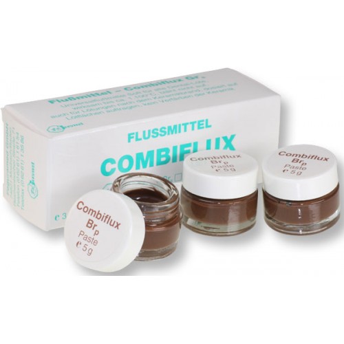 Combiflux універсальна паста для споювання дорогоцінних і недорогоцінних сплавів: сталь + сталь; золото + золото; золото + сталь. Не допускає утворення оксидної плівки, що не пузириться і згорає без залишку.