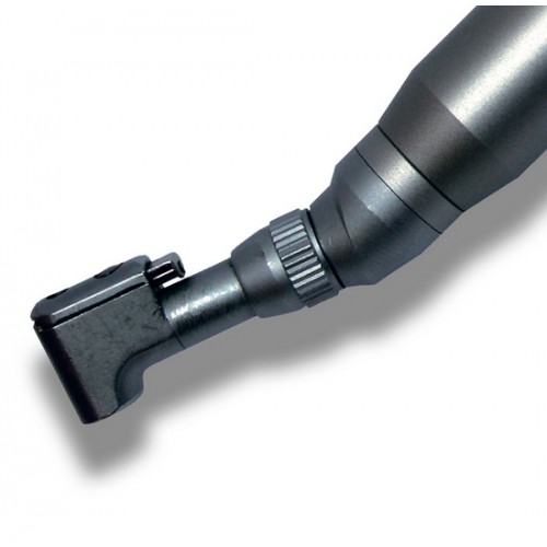 Кутовий наконечник виробництва компанії Nakamura Dental (Японія) із знижуючим редуктором. Коефіцієнт зниження 16: 1. Для використання, де потрібно значно знизився рівень оборотів обертання бору. Надійний механізм створює плавне і стабільне обертання. Головка з кнопкової фіксацією бору. Підшипники створюють збалансоване обертання.