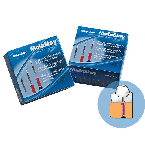 Одинарні і подвійні штифти Mainstay використовуються для створення дуже точних розбірних моделей. Вони мають унікальну форму, завдяки чому попереджається можливість прокручування гіпсового стовпчика. Завдяки пластиковому підставі, штифти надійно утримуються в цоколі моделі.